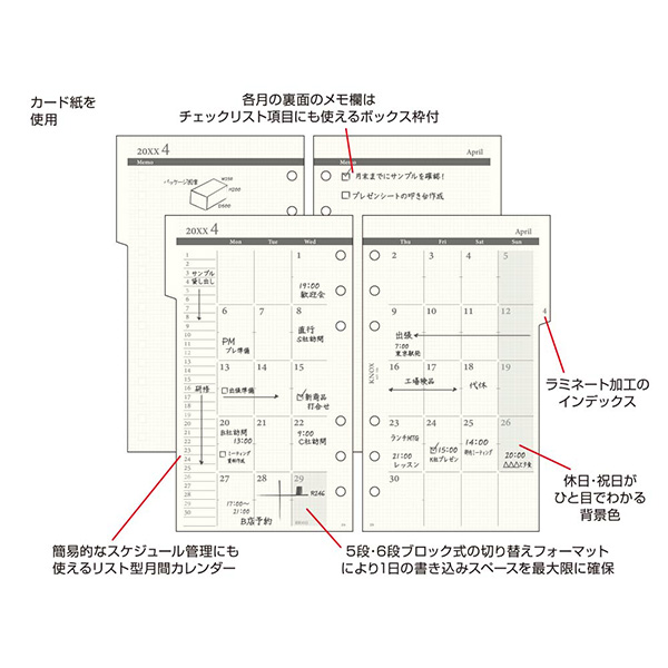 便利なインデックス付きの月間タイプ