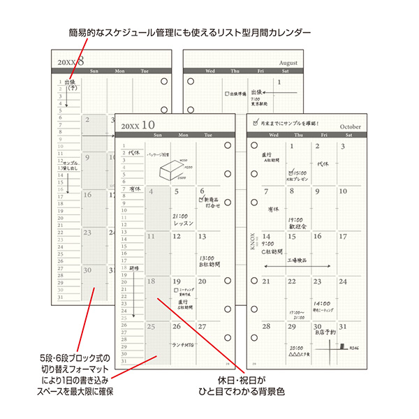定番のブロックタイプを日曜始まりに