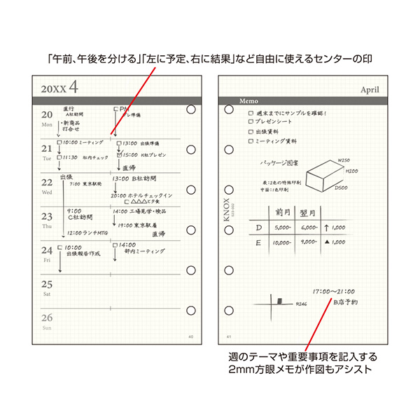 ノックス26 【ミニ6】日付入片面1週間片面メモ