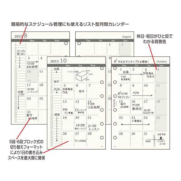 TOP 手帳 システム手帳 システム手帳リフィル 26 【ミニ6】日付入見開き1ケ月間ブロック式