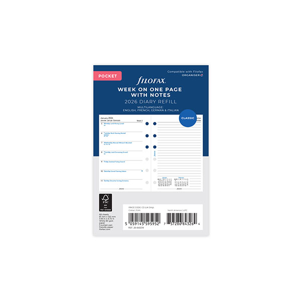 ファイロファックス26 システム手帳リフィル 見開き1週間&片面メモ スモール