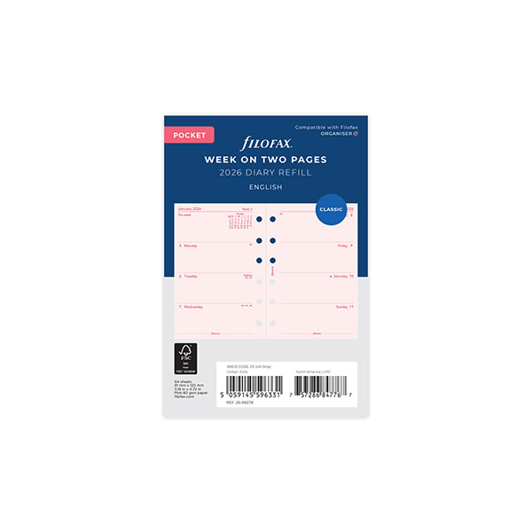 ファイロファックス26 システム手帳リフィル 見開き1週間 月-日(ピンク) スモール