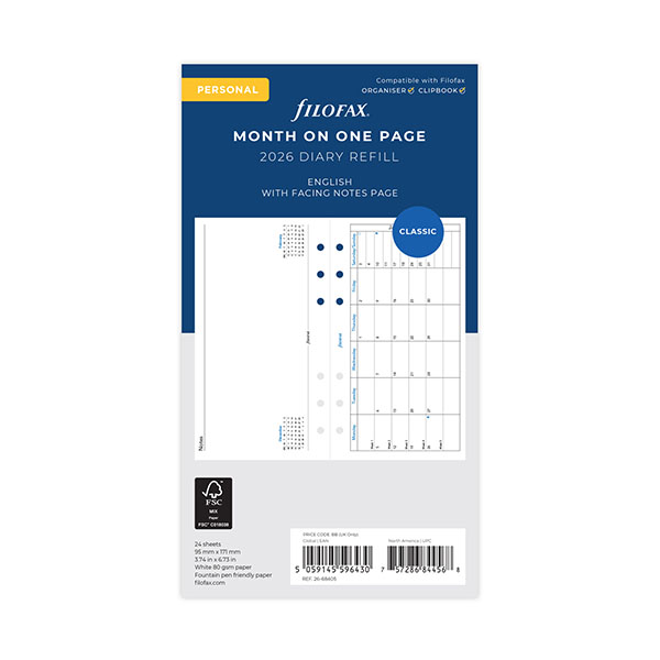 ファイロファックス26 システム手帳リフィル 見開き1ヶ月(横)&片面メモ バイブル