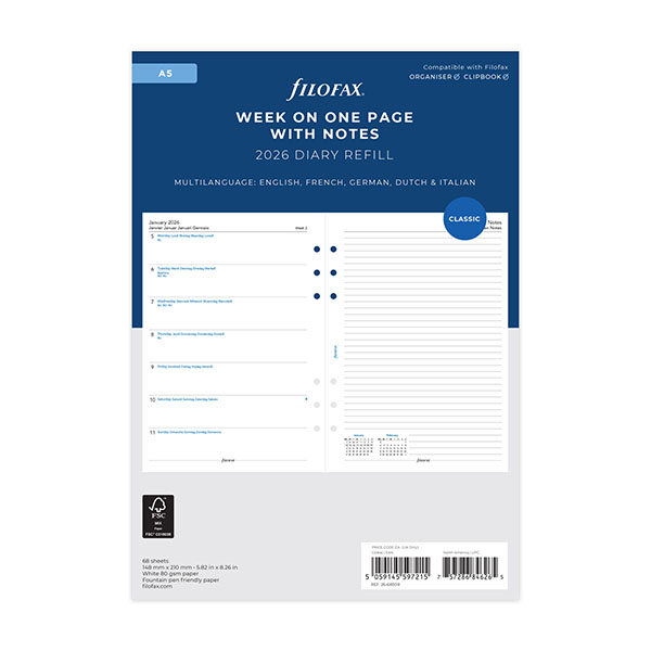 A5サイズのファイロファックス ダイアリーリフィルです。