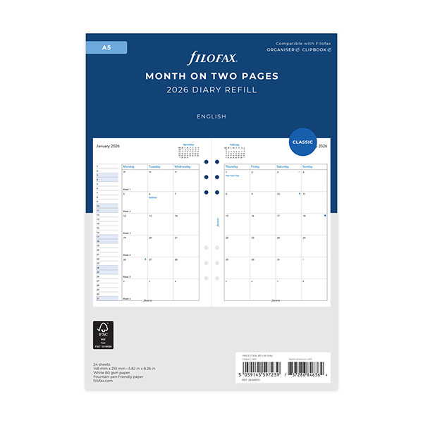 ファイロファックス26 システム手帳リフィル 見開き1ヶ月 A5