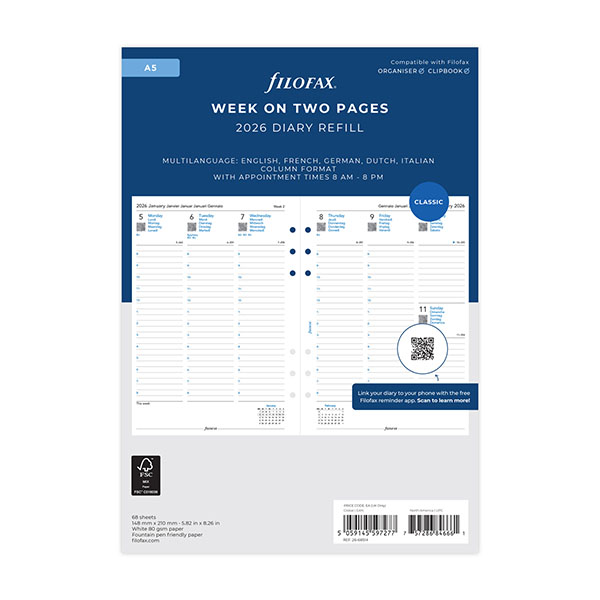 A5サイズのファイロファックス ダイアリーリフィルです。