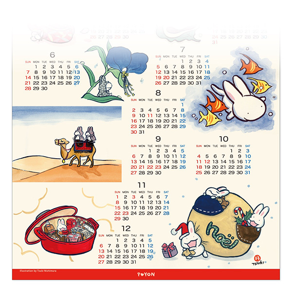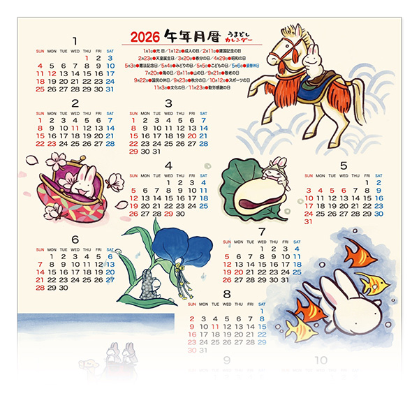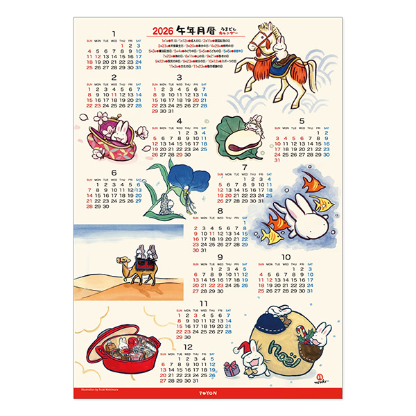 1枚に12ヶ月分の暦が描かれているので一年中お部屋に飾ってお楽しみいただけます。