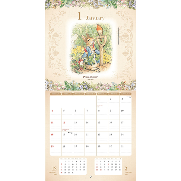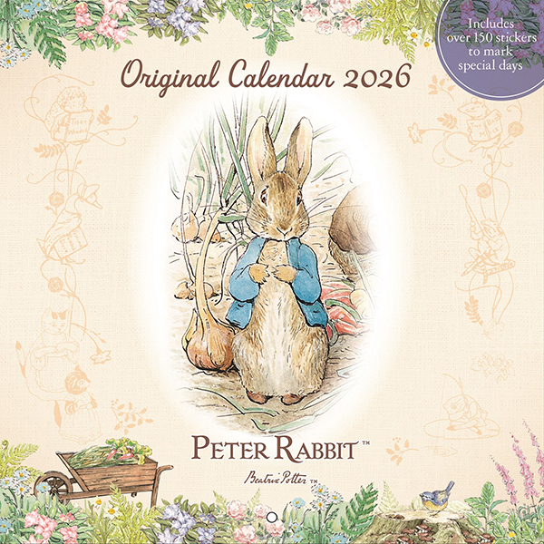 世界中で愛されるキャラクター、ピーターラビットの2026年カレンダー。