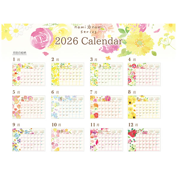 カラフルなお花のイラストが毎年評判の”naminamiシリーズ”カレンダーです。