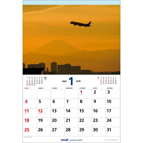 TOP カレンダー カレンダー 2026 ANA フライトカレンダー(小型CL付)