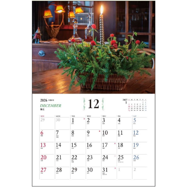 ●祝祭日、六曜、次月、月齢(新半満月)表示あり