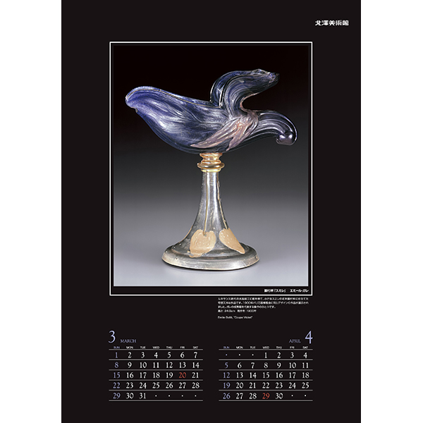 北澤美術館収蔵のガラス工芸のカレンダーです。
