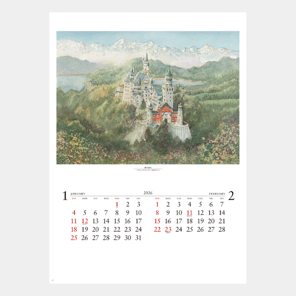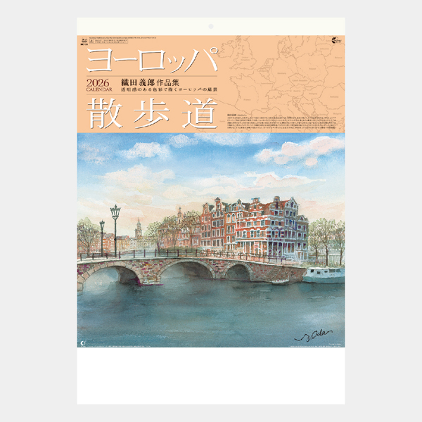 欧州の街並みをやさしい色使いで描く、織田義郎の作品集カレンダーです。