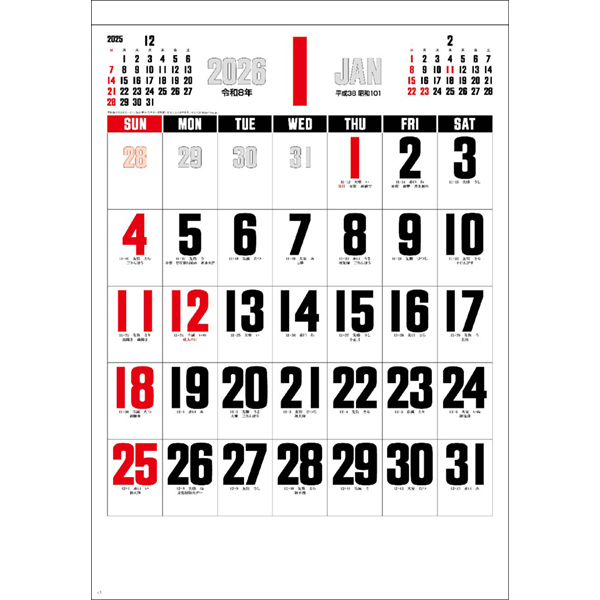 大きな文字、広いメモ欄のシンプルデザインが特徴のカレンダーです。