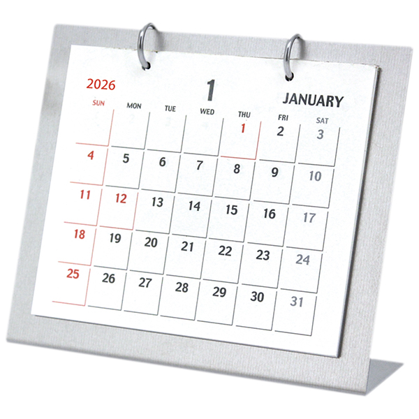 アルミ素材のスタイリッシュな卓上カレンダーです。