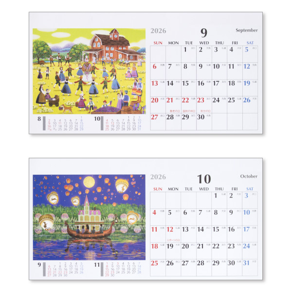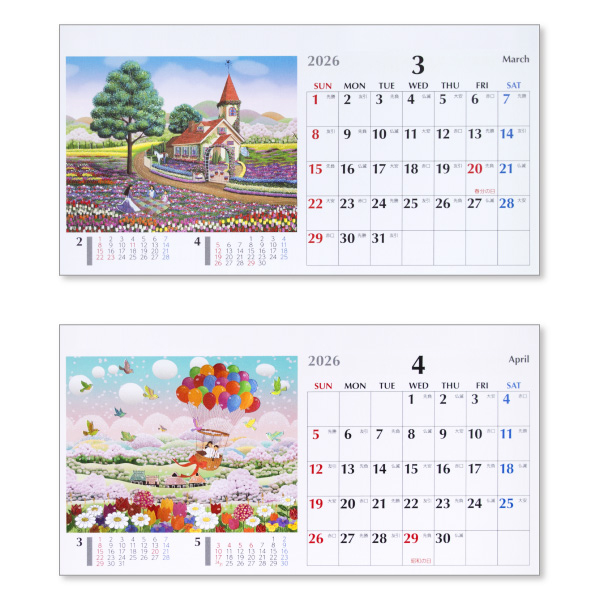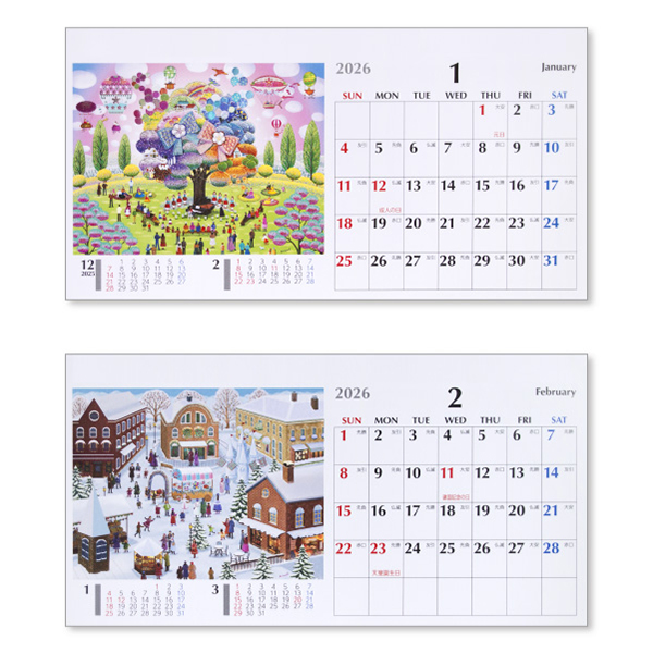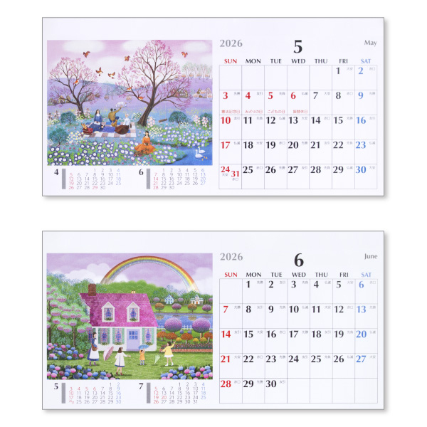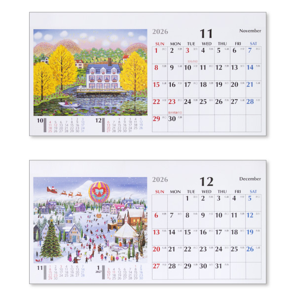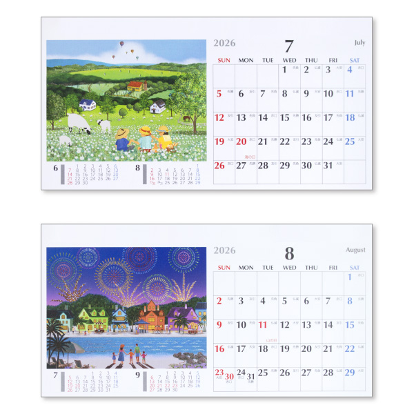 ・月めくり・卓上タイプ・六曜表記、前後月表記有り