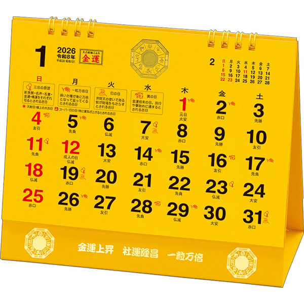 TOP カレンダー カレンダー 1月始まり卓上カレンダー 2026 卓上L 金運カレンダー 大吉招福ごよみ