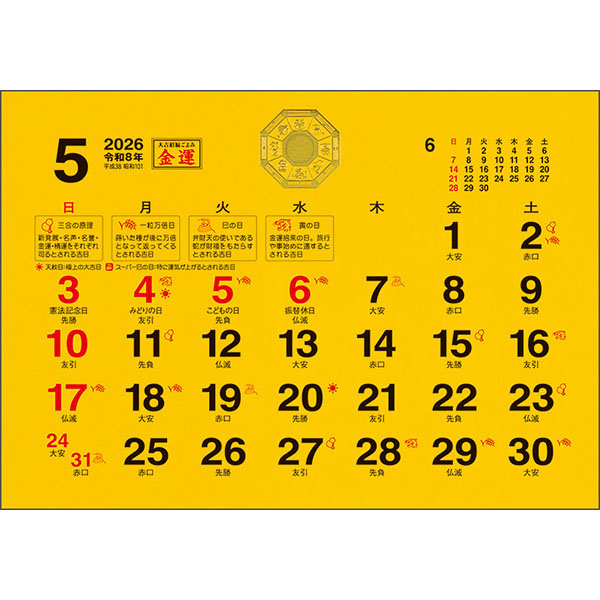 ●六曜、金運吉日表記あり