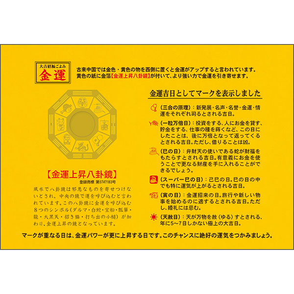 ●八卦鏡とカレンダーの解説ページ付き