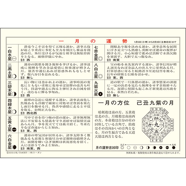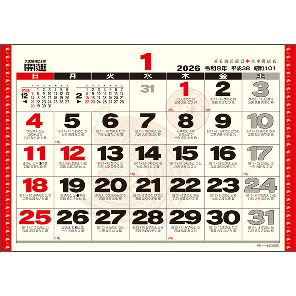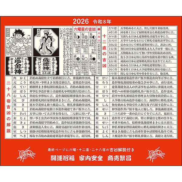 TOP カレンダー カレンダー 1月始まり卓上カレンダー 2026 卓上L 開運カレンダー 大吉招福ごよみ