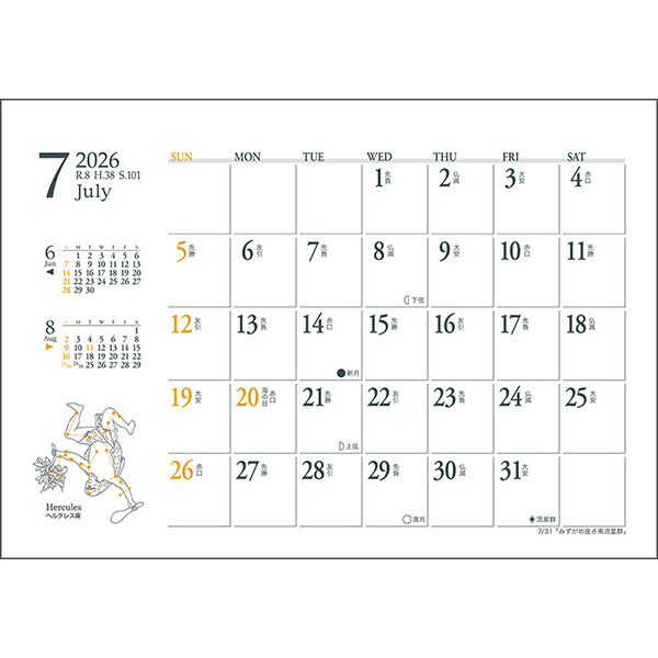 その月に見られる星座のイラストや、流星群等の情報が掲載されています。