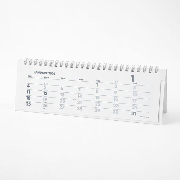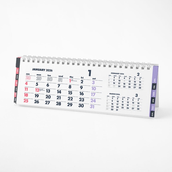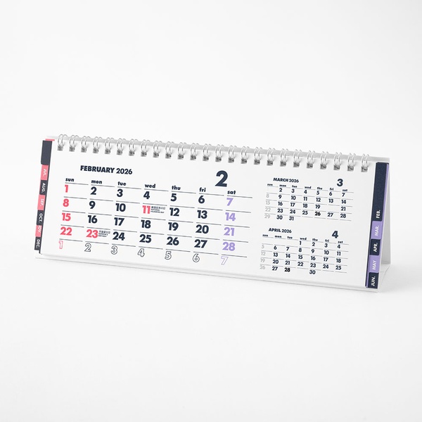 PCディスプレイの下など、限られた卓上スペースを有効に活用できるコンパクトな卓上カレンダーです。
