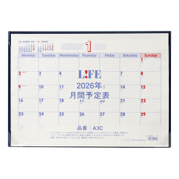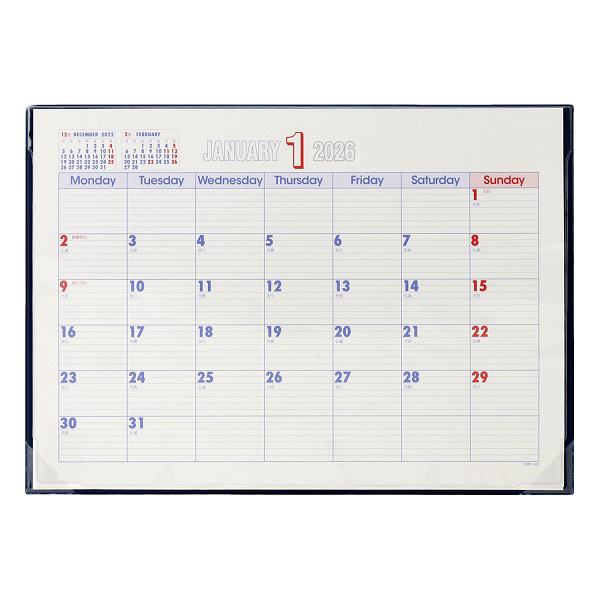 卓上型月間予定表月曜始まり、外出先への持ち運びが便利。