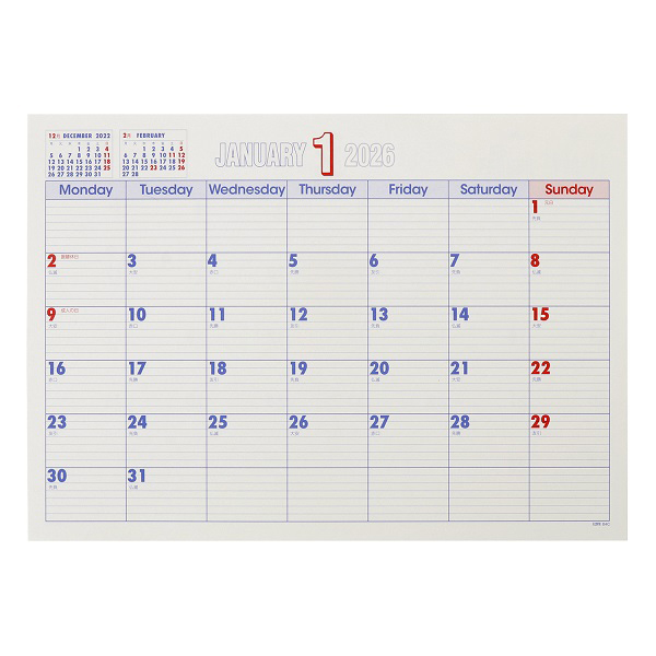 予定表(中紙) 卓上型月間予定表月曜始まり