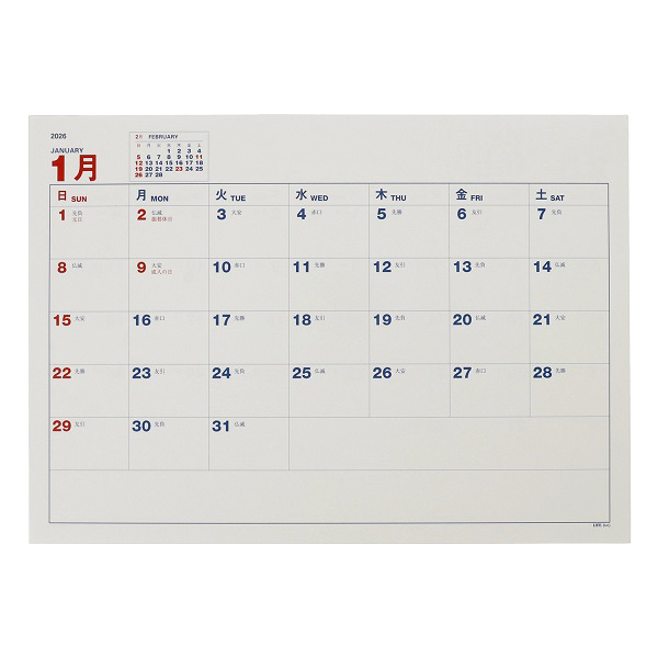 予定表(中紙) 卓上型月間予定表日曜始まり