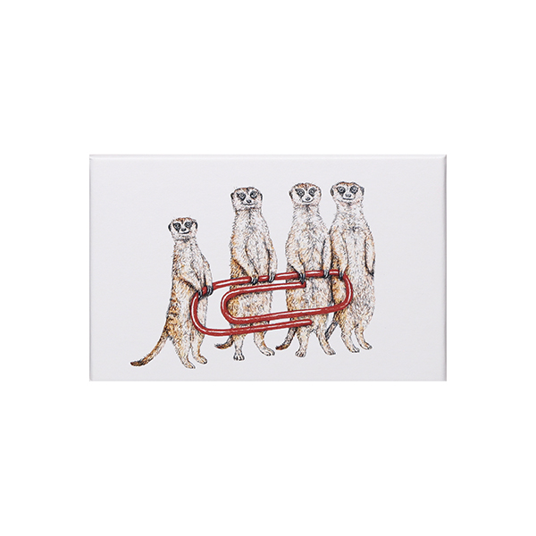 伊東屋のアイコンであるレッドクリップを抱えたミーアキャットのイラストは、秦直也によるコラボ描きおろしイラストです。