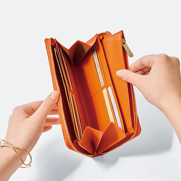 ロングタイプは、クラッチバッグ感覚で持てる美しさとともに、持ち主のスタイル・状況にあわせて使い方をアレンジできる、“遊び”を持たせた長財布。