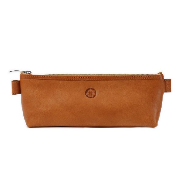 学業や仕事への携帯に最適なサイズの、シンプルな革製ペンケース。