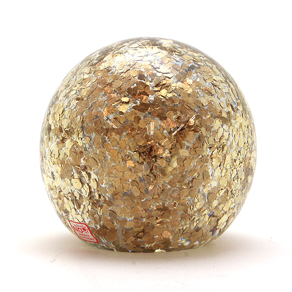 カラスの球体に金ラメの塊をぎゅっと閉じ込めたかの様な、大変ゴージャスなペーパーウェイトです。 存在感があるのでインテリア小物としてもお使いいただけます。