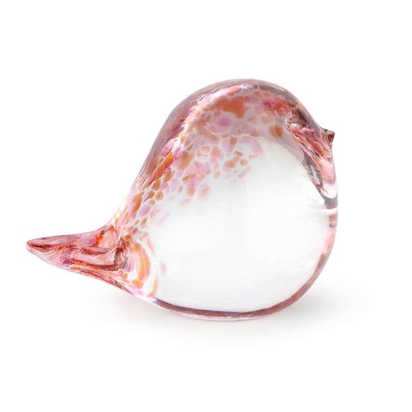 つぶらなお目目、つんとした嘴と尻尾が可愛らしい、見た目も涼しげな小鳥のグラスオブジェ。