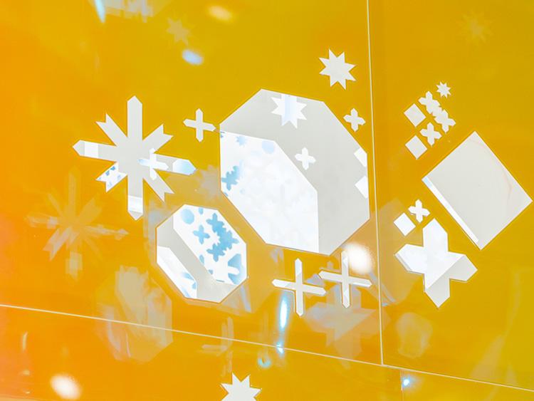 また本店では銀色のシート、横浜元町・玉川店では和紙を使用したりと、どうなっているんだろう?と足を止めてじっくり見たくなる工夫を施しつつ、変わりゆく季節とともに変化する朝の光や日々の煌めくさまを表現しました。
