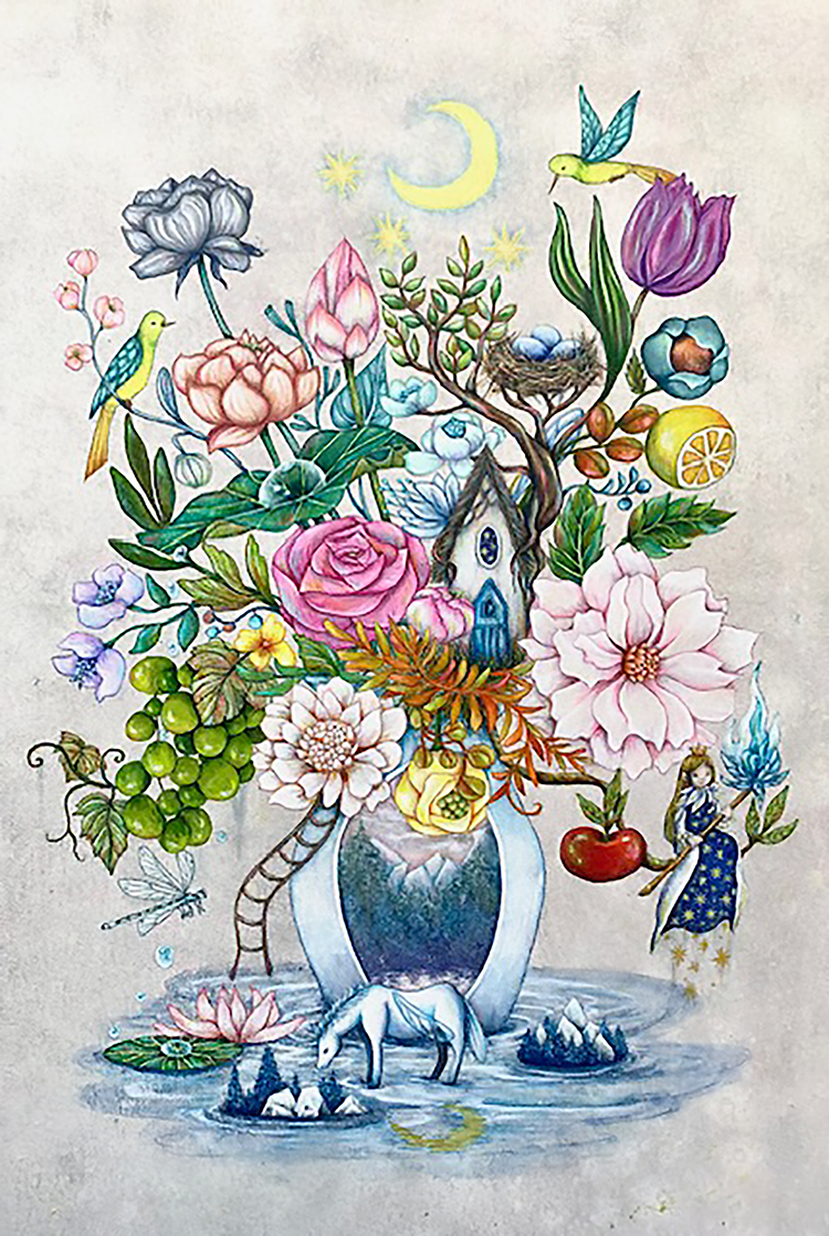 繊細な線と色使いで幻想的な世界を表現する林さん。