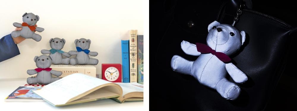 反射素材を用いたキーホルダーは、暗くなる帰り道に安心なアイテムです。