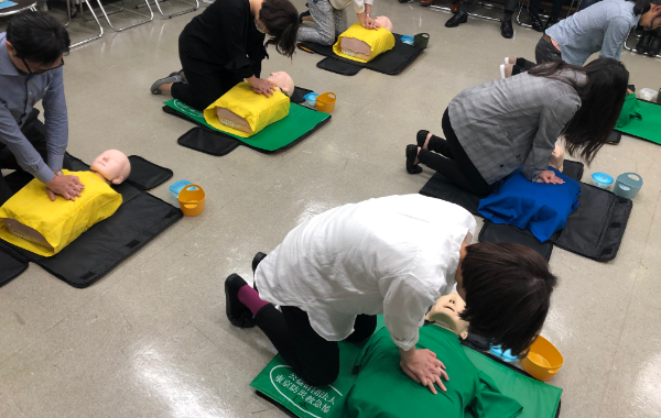 災害時および日常の急病人やケガ人に速やかに適切な対応が出来るよう、社員全員が救急救命講習を受講しています。銀座本店にはAEDも設置しています。