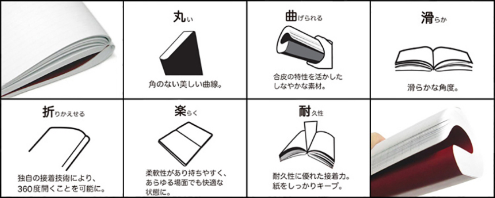 ページを360°開くことができる、驚異的な柔軟性を持つノート「ジークエンス360°」。