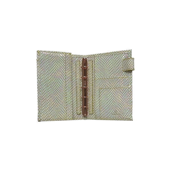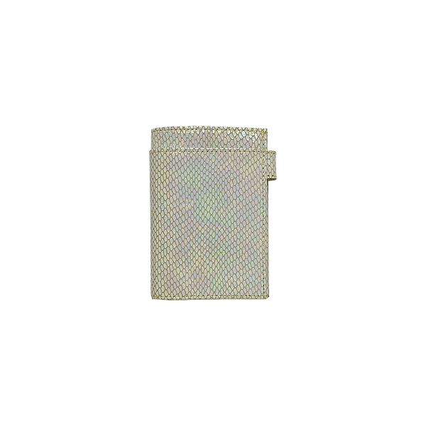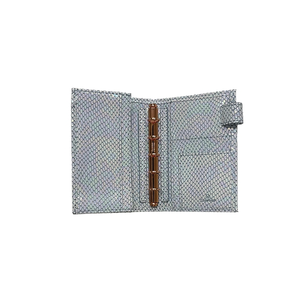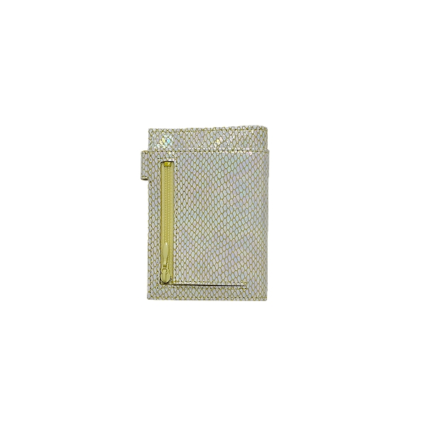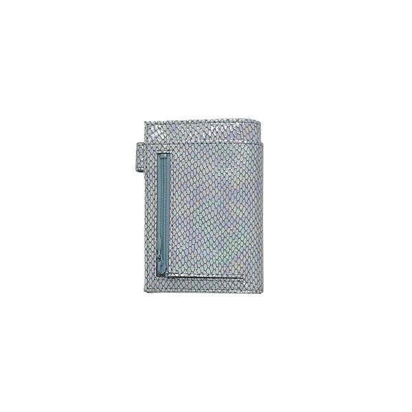 ピッグスウェードにオーロラフィルムを重ねた幻想的な素材を使用。光の当たり方や角度によって、まるで虹のように表情を変えるその輝きは、持つ人の気分までも明るく照らします。
