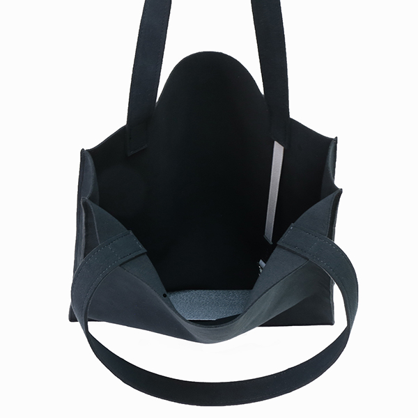 荷物を運ぶ姿がいつも美しくスマートであるようにと設計されたマチ付きトートは、柔らかな生地を用いながら、紙製ショップバッグのような直線的フォルムが特徴です。モノをいれても美しく保たれ、ビジネスにふさわしい良い緊張感のある佇まいです。