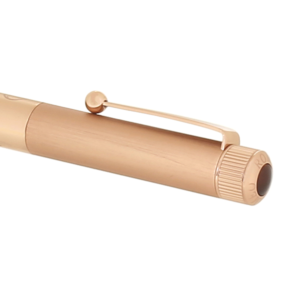 書くたびに触れる天冠はつくりを変え、繰り出しの感覚をよりスムーズに、口金のエッジや各パーツの接合部のラインもこれまで以上になめらかに。金属のかたまりからひとつずつ削り出したパーツで構成しディテールの仕上げを追及、材質の美しさも引き出しています。