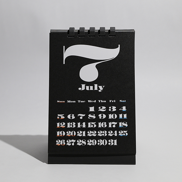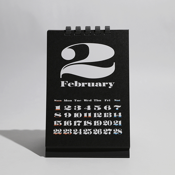 特徴的なタイポグラフィーによってデザインされたカレンダー。