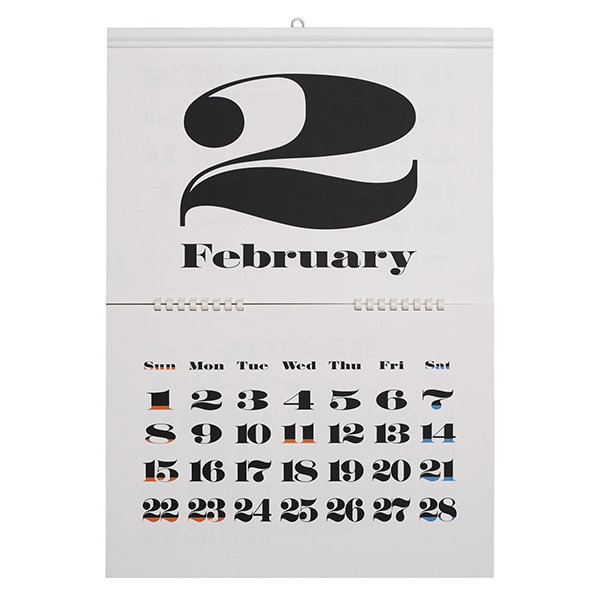 特徴的なタイポグラフィーによってデザインされたカレンダー。