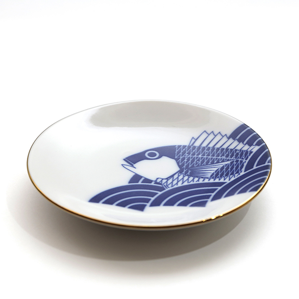 岐阜県の窯元で作る美濃焼の磁器に和食の食材として使われる魚の柄を施した、伊東屋オリジナルデザインの小皿です。