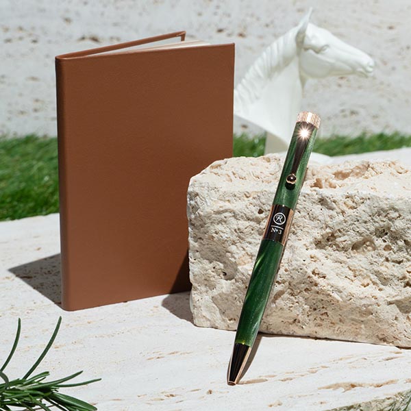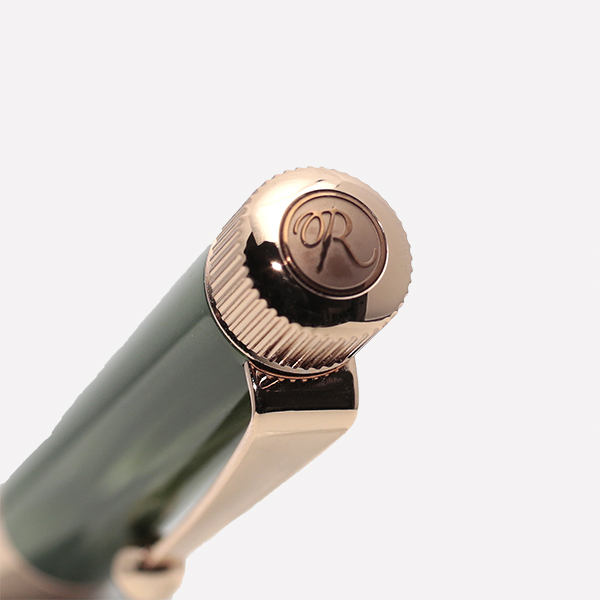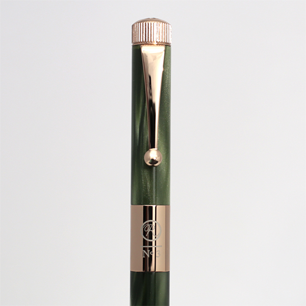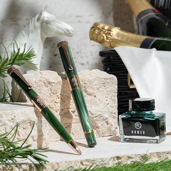 腕時計の竜頭をモチーフとした天冠に「大切な時間をこの筆記具と共に過ごしていただきたい」というメッセージを込めたROMEO No.3ボールペンは、手元を彩るフォルム、優れたウェイトバランスとなめらかな筆記が特徴。
