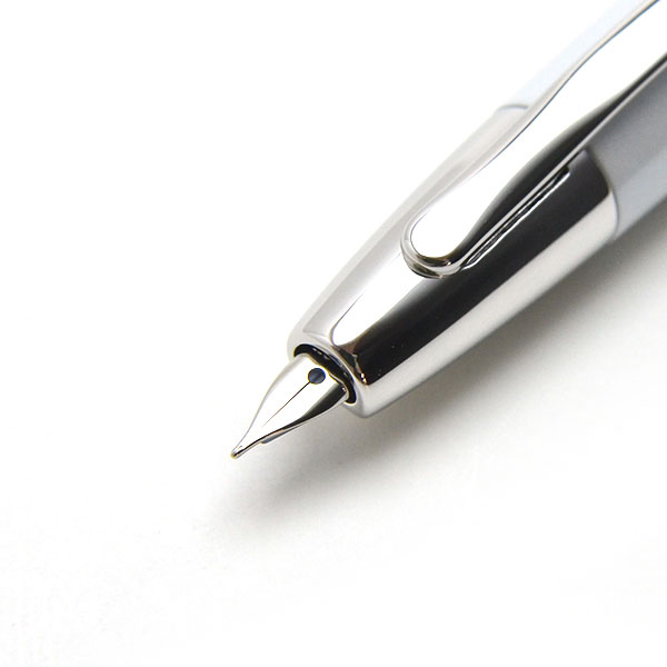 ノック式万年筆という珍しさもありながら、ペン先は18金を使用しており、筆記としての機能も抜群です。