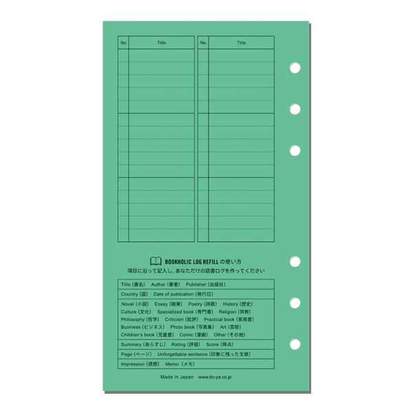 読書好きのためのシステム手帳リフィル。読書ライフをより楽しくします。