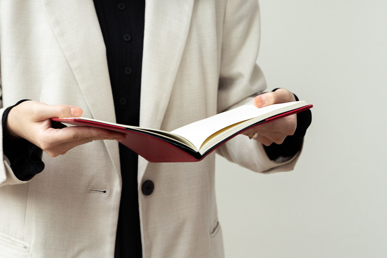 ノートを手に取りパラパラとページをめくるとき、もともと表紙も中紙も一体であったかのような感覚が味わえます。自然に手になじむので、ノートを書くときも見返すときも快適。目の前の仕事に集中できます。
